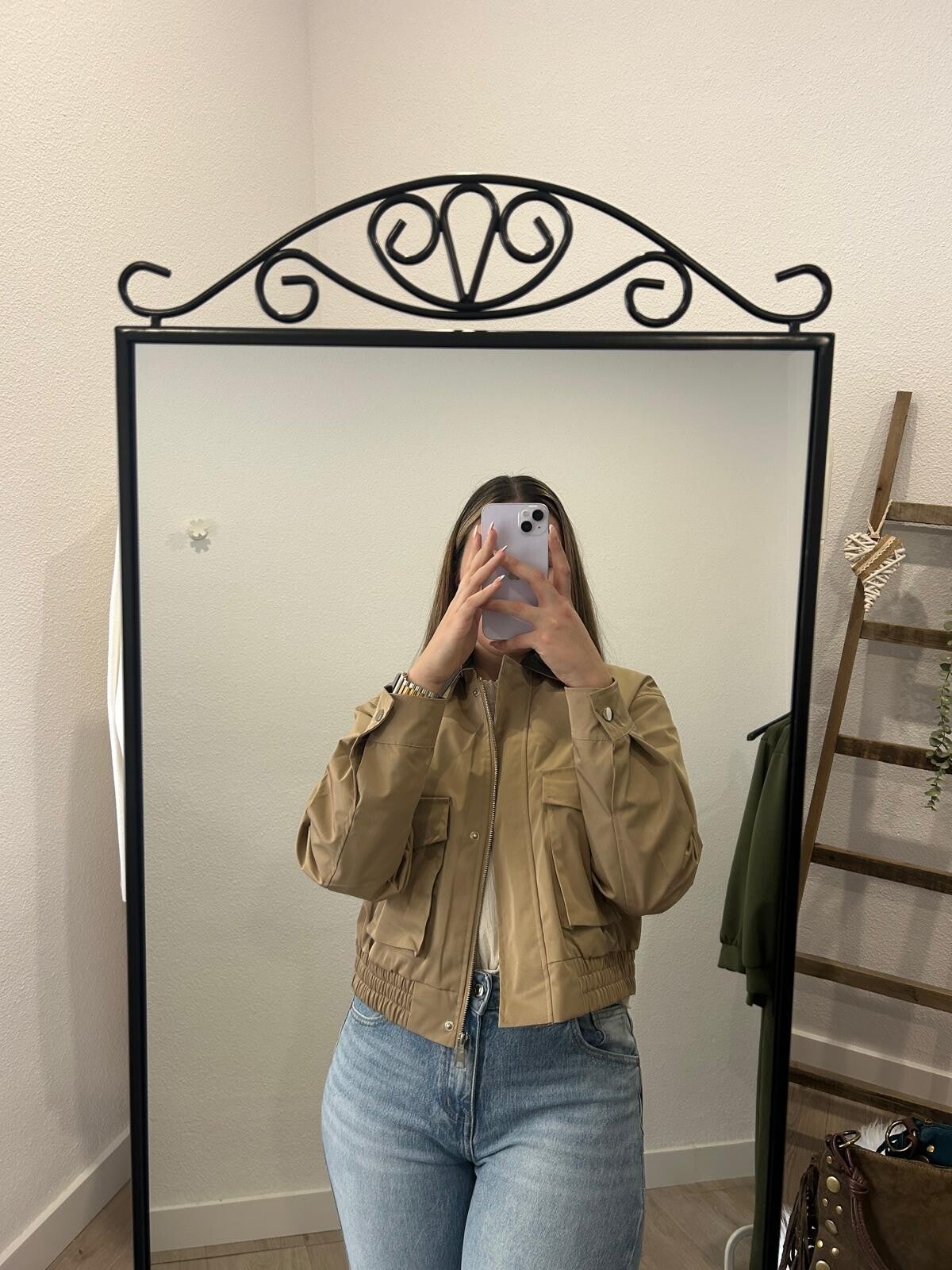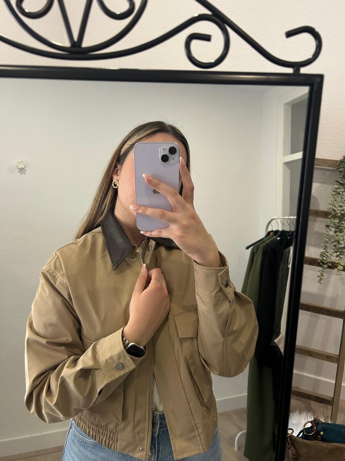 Chaqueta de efecto loneta con cuello en polipiel marrón chocolate.