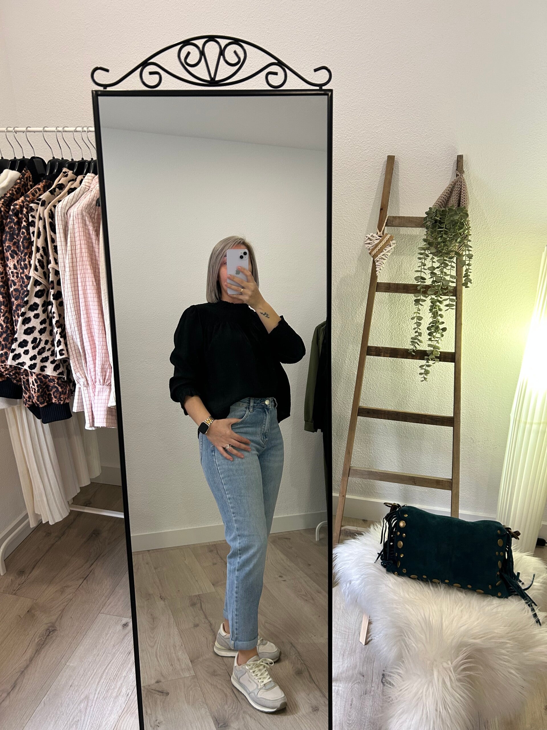 Blusas fluidas con efecto panel de abeja en la zona del pechp, manga al codo con fruncido.